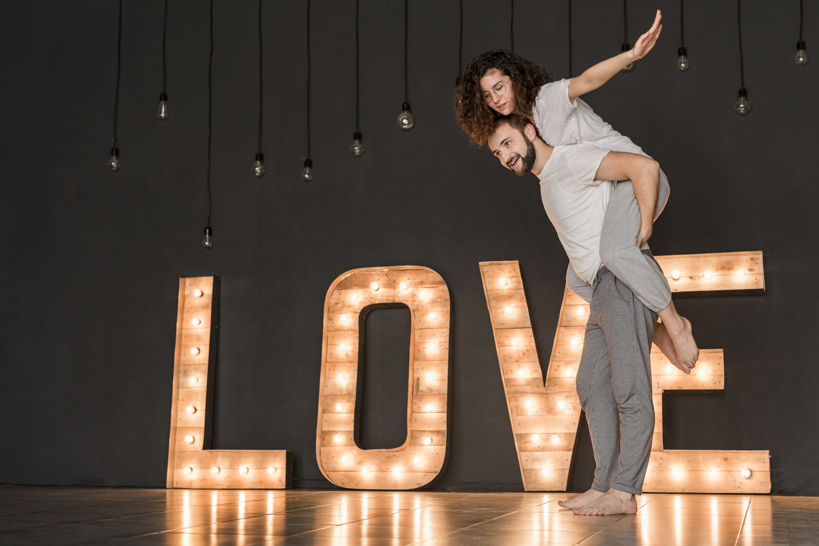 As sessões estilo love story ficam ainda mais bonitas quando o casal não “representa”, mas vive o momento. Sentar-se no chão, partilhar uma manta, caminhar devagar pelo estúdio, abraçar-se junto ao espelho ou criar cenas acolhedoras com livros ou chá. Tudo isto resulta em imagens naturais e esteticamente elegantes.